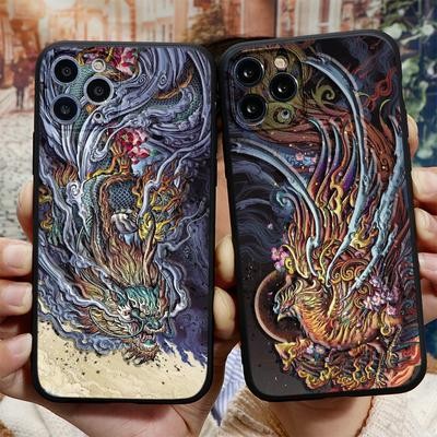 Dragon Phoenix TPU 3D рельефная крышка для iPhone 13 12 14 11 Pro Max SE 2022 Samsung A53 A50 A30 A7