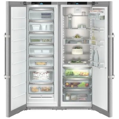 Дизайн и практичностьС моделями Side-by-Side от Liebherr Вы сможете комфортно хранить еще больше свежих и замороженных продуктов. Оптимальный выбор для большой семьи или для тех, кто не любит часто ходить в магазин!Зона свежести BioFreshВнутри контейнеров BioFresh поддерживается температура, которая близка к 0°С и высокая влажность – это оптимальные условия для хранения овощей и фруктов. В контейнере с низкой влажностью можно разместить мясо, сыры и другие молочные продукты.Сенсорный дисплейСенсорный дисплей с высоким разрешением и контрастом установлен за дверью. Он позволяет осуществлять интуитивно понятную настройку температуры и выбирать необходимые функции за несколько касаний. Динамическое охлаждениеВ системе PowerCooling используется мощный и тихий вентилятор, который обеспечивает активную циркуляцию воздуха, за счет этого внутри холодильника устанавливается равномерная температура, а угольный фильтр FreshAir попадание посторонних запахов во внутреннее пространство.Задняя стенка из нержавеющей сталиНержавеющая сталь с покрытием SmartSteel на задней стенке обеспечивает устройствам необычный и притягательный внешний вид. Такая поверхность является безопасной для еды, а еще на ней практически не остаются отпечатки пальцев.Колонны LightTowerДве LED-колонны наполняют внутреннее пространство холодильника белым светом. Во время работы они практически не выделяют тепло, потребляют мало энергии, обеспечивают оптимальный обзор и великолепный внешний вид.Контейнер для мелочейКонфигурируйте холодильник под продукты и емкости практически любого размера - для мелочей всегда найдется место. Контейнер VarioSafe оптимален для небольших продуктов и различных баночек.Комфорт в деталяхПланируете охладить чуть больше напитков, чем обычно? В устройствах с зоной свежести BioFresh для этого предусмотрена специальная полка. Для ее использования достаточно легким движением руки поднять стеклянную панель и расположить там бутылки, вскоре после этого они будут охлаждены и готовы к подаче.Контейнер SpaceBox в морозильной камереТеперь в морозильной камере можно комфортно разместить объемные продукты. С контейнером SpaceBox вы заморозите ту еду, которую нельзя расфасовать, например, целую индейку или большой торт. Контейнер с высотой 250мм позволяет легко их расположить!Ручка с толкателемНовая ручка с интегрированным механизмом толкателя позволяет открывать дверь практически без усилий. Её конструкция стала прочнее, а утонченный и элегантный дизайн будет оптимально гармонировать с различными интерьерами.Доводчики SoftSystemДоводчики SoftSystem позволяют закрывать дверь плавно и непринужденно, обеспечивая мягкость даже при резком закрытии и полной загрузке полочек. Бутылки и продукты будут находиться в спокойствии и не сдвинутся с места.Немецкое качествоПри разработке холодильного оборудования мы учитываем многолетний опыт наших инженеров и различные сценарии использования. Из-за этого наша техника получается инновационной, сбалансированной и удобной!